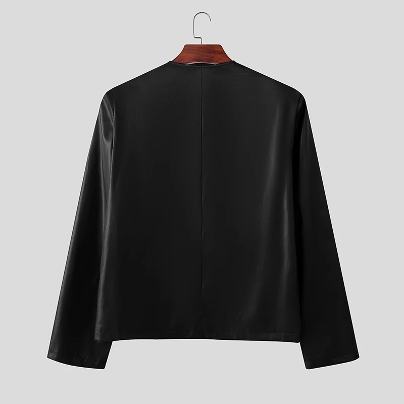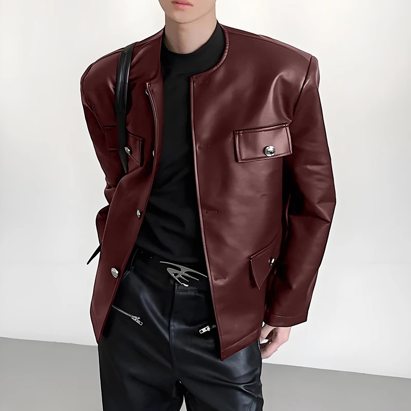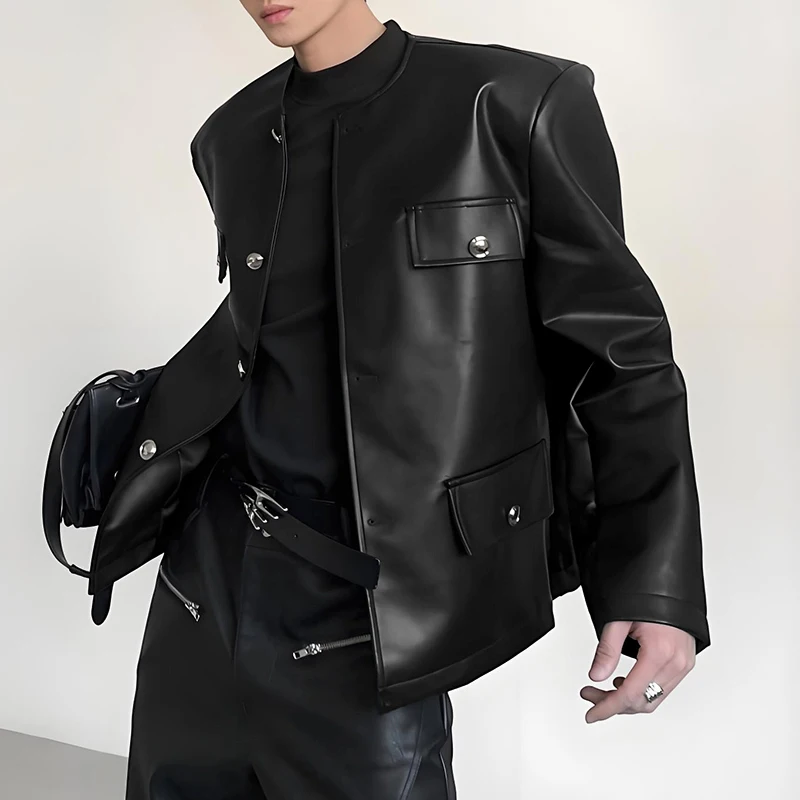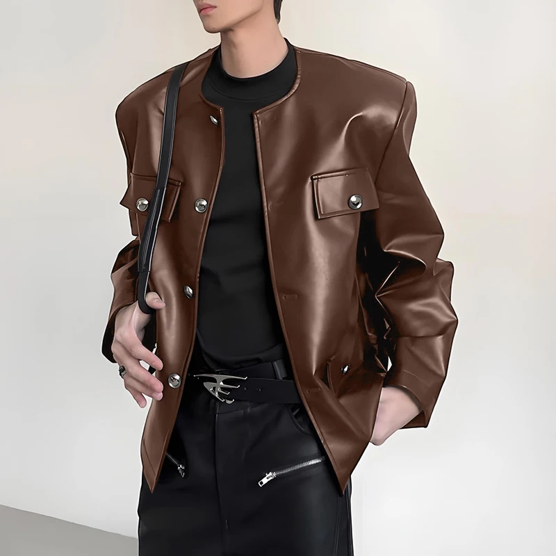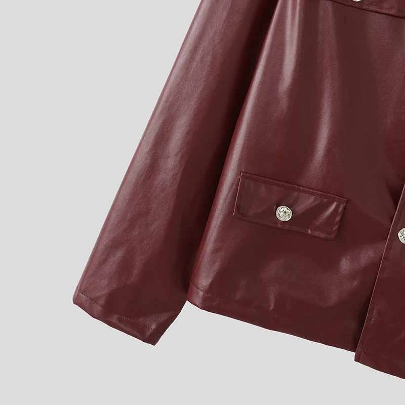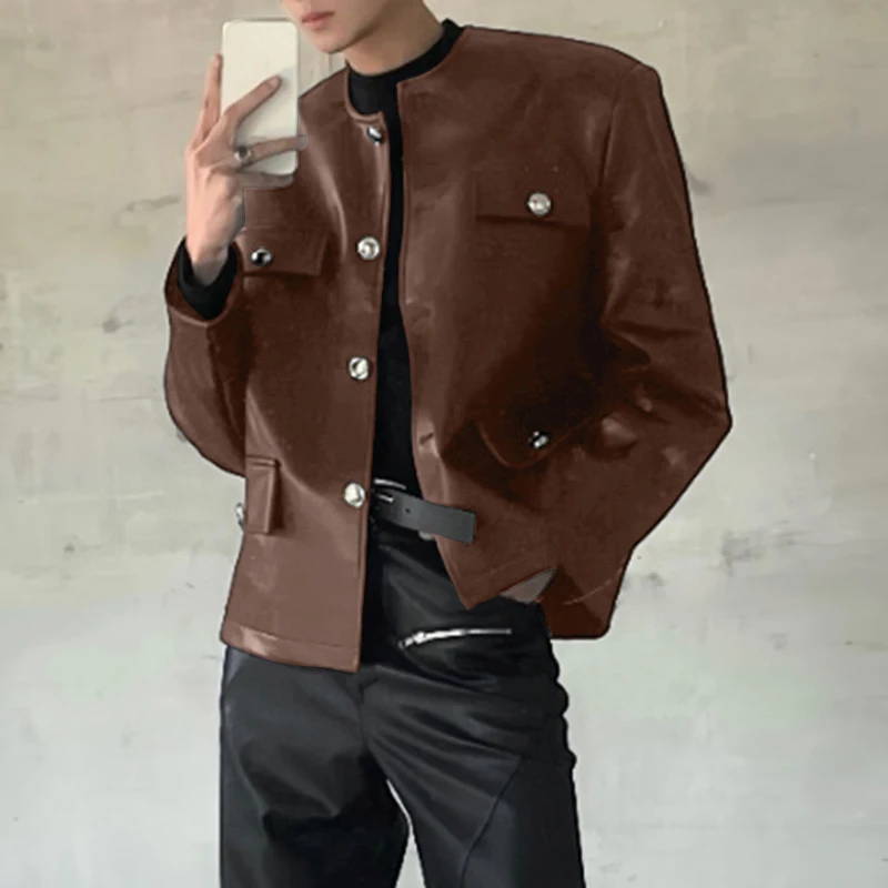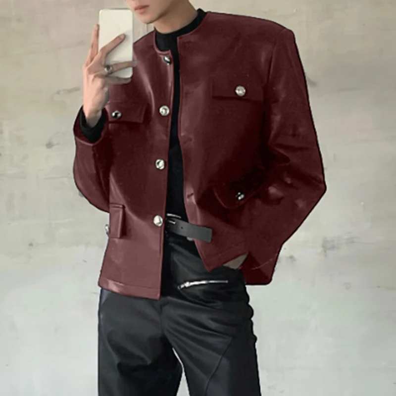 INCERUN Men Jackets PU Leather Solid Color O-neck Long Sleeve Male Coats Streetwear Button 2025 Fashion Casual Jackets Outerwear