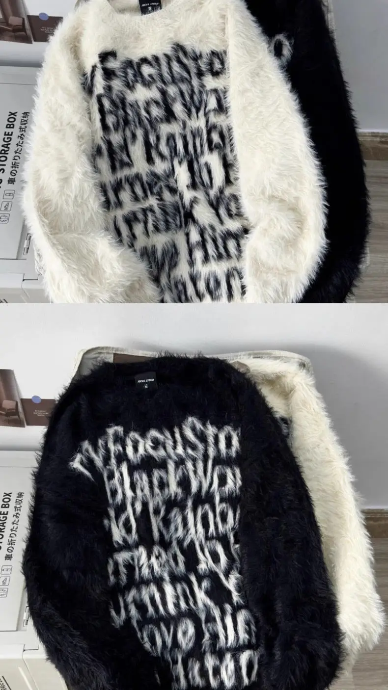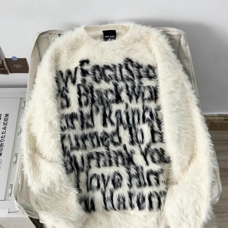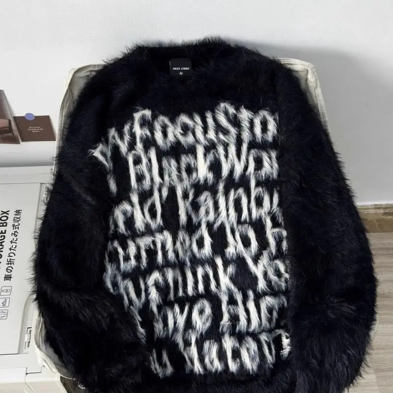 Retro Couple Letter Soft Waxy Sweater Men and Women Autumn and Winter Loose Knitted Sweater